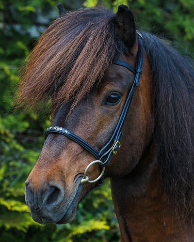 Flaches, englisch-kombiniertes Sperrhalfter, islandfarben geflochten, passend zu Kopfstück "Island" und allen anderen Hilbar Kopfstücken.